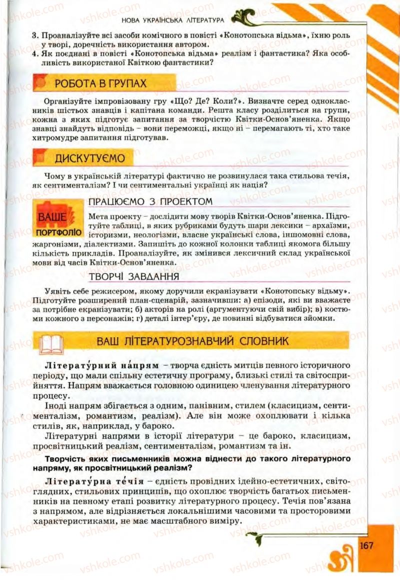 Страница 167 | Підручник Українська література 9 клас О.І. Міщенко 2009