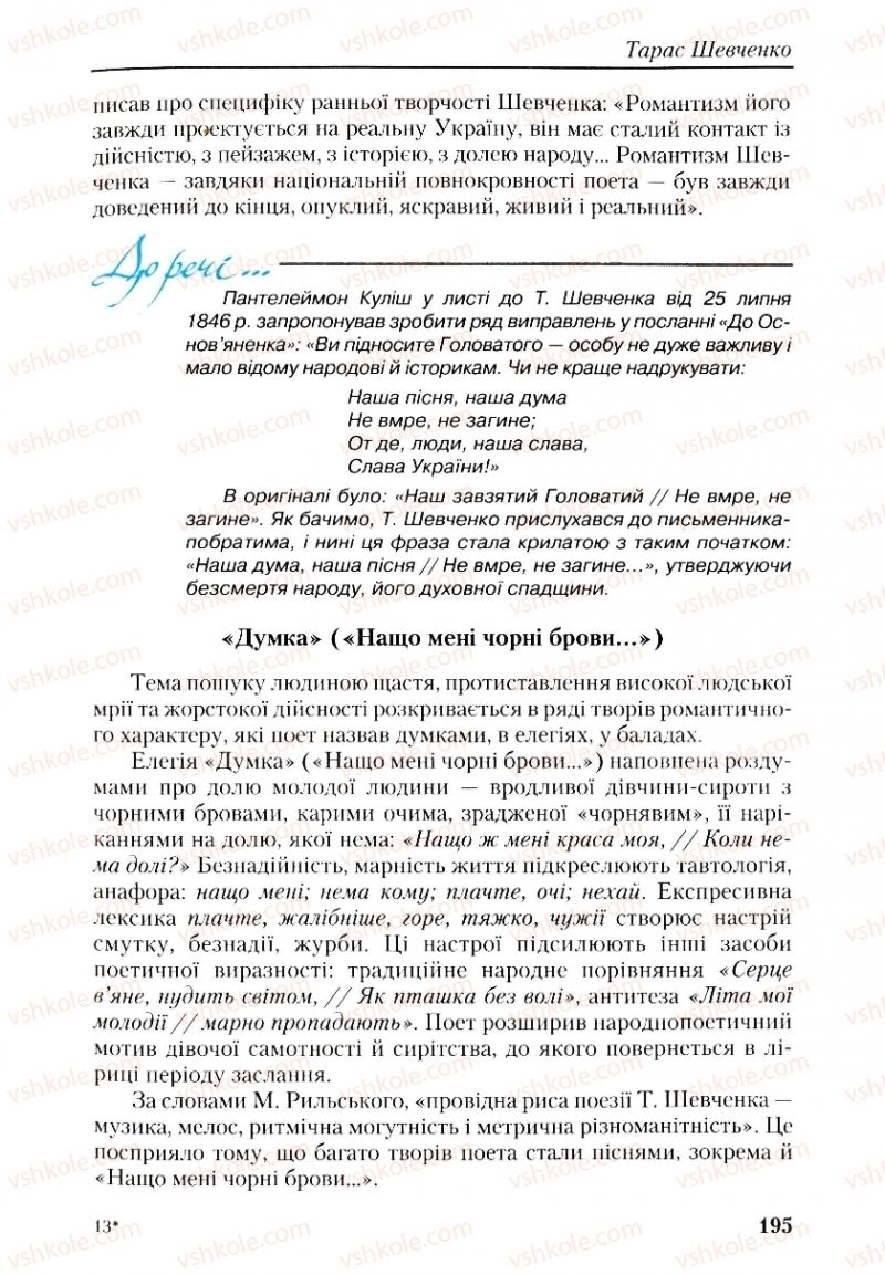 Страница 195 | Підручник Українська література 9 клас О.М. Авраменко, Г.К. Дмитренко 2009