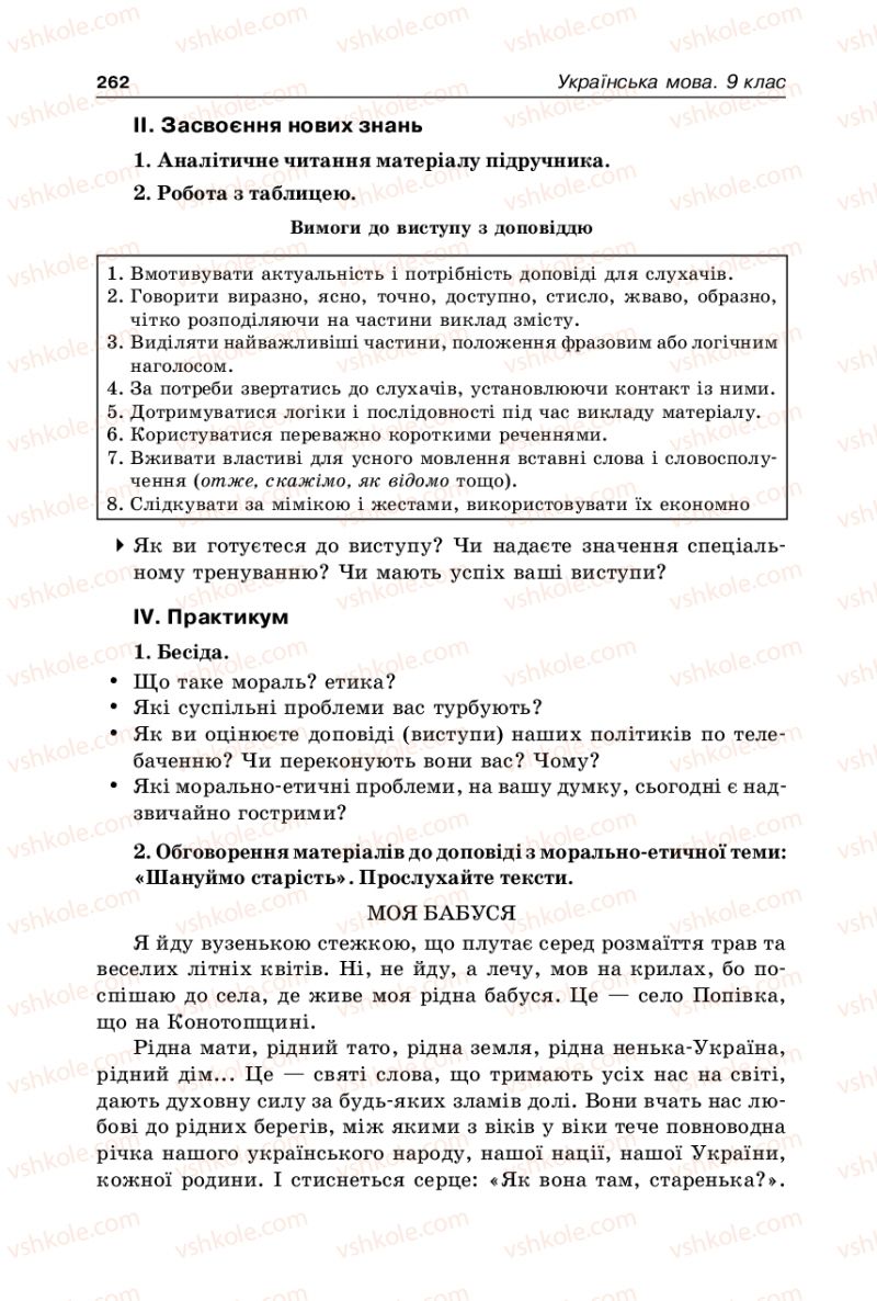 Страница 262 | Підручник Українська мова 9 клас В.І. Тихоша 2009