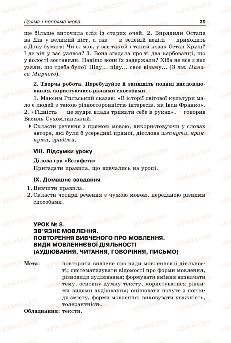 Страница 39 | Підручник Українська мова 9 клас В.І. Тихоша 2009
